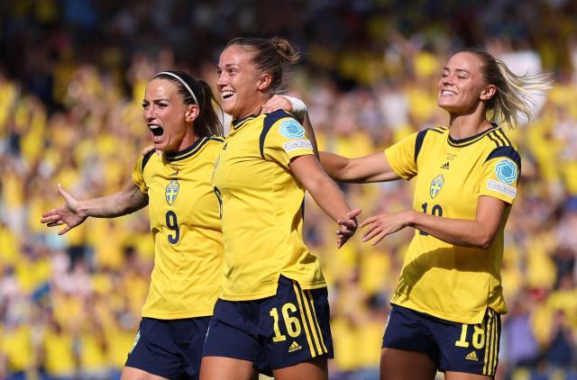 为确保出线有利形势,瑞典队早早占据主动,在半场结束前3球领先葡萄牙。最终凭借5比0的大比分,瑞典以净胜球的优势拿到小组第一,1/4决赛避开法国的同时,进入相对有利的半区。阿斯拉尼(下图左一)1传1射,三场小组赛都有助攻。